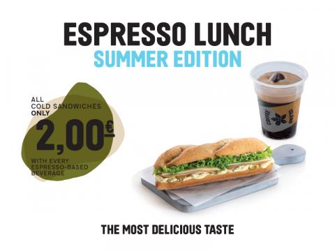 The Espresso Lunch Summer Edition becomes... An addiction! All sandwiches ONLY 2€ with every Espresso Based beverage, until 11/7. ENJOY!