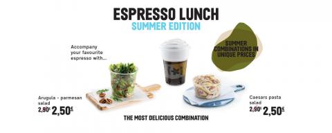 Espresso Lunch is back again! Accompany your favourite espresso with.. A fresh Arugula - Parmezan Salad or a Caesars Pasta Salad with only 2,50€ ! THE MOST DELICIOUS COMBINATION