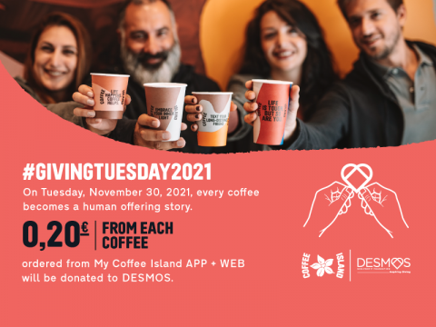 On Tuesday, November 30, 2021, every coffee becomes a human offering story. 0,20€ from each coffee ordered from My Coffee Island APP+WEB will be donated to DESMOS.