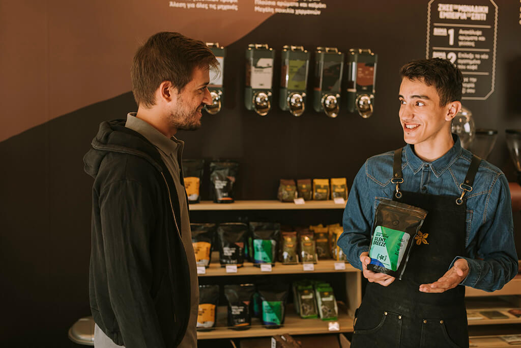 At our coffee shops you will find 3 blends of Greek coffee in silos: Special, Traditional and Dark. You can also pick from the 2 blends of packaged ground coffee: Special and Traditional. For those of you, who want to know every small detail, you can inquire about each blend’s characteristics from our specialists!
